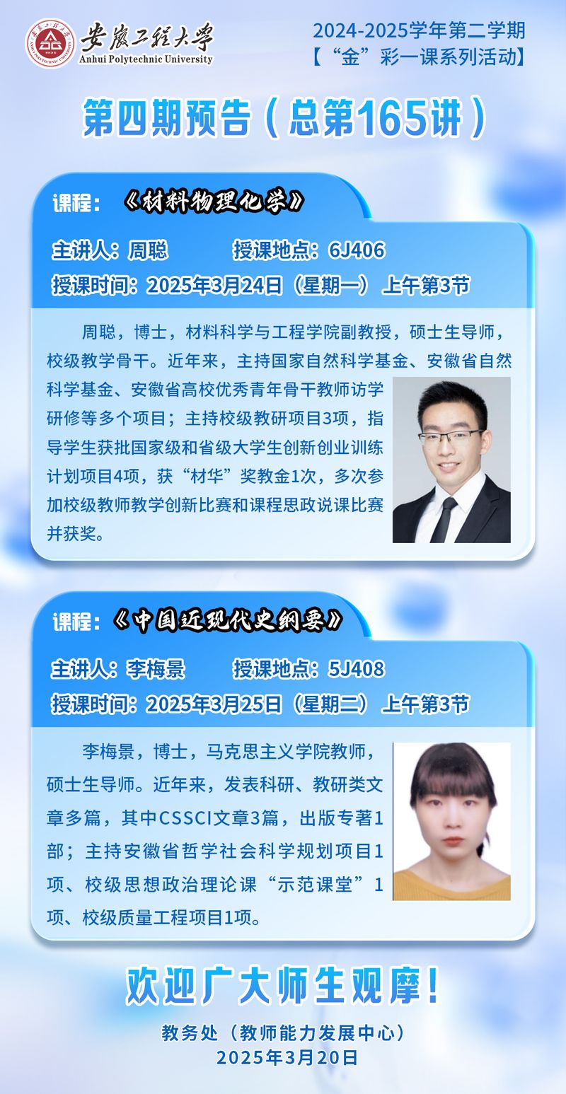 2024-2025学年第二学期【“金”彩一课系列活动】第四期预告(总第165讲)