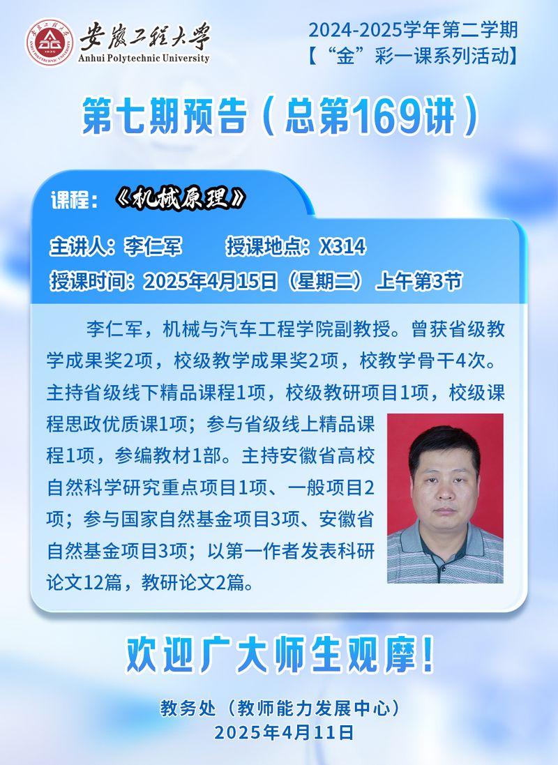 2024-2025学年第二学期【“金”彩一课系列活动】第七期预告(总第169讲)
