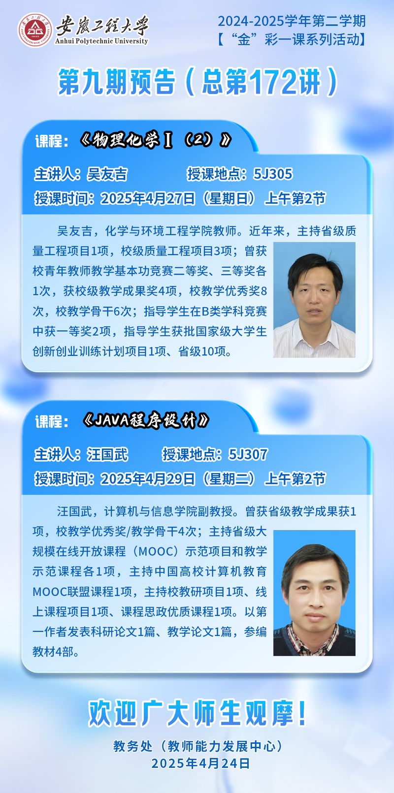 2024-2025学年第二学期【“金”彩一课系列活动】第九期预告(总第172讲)