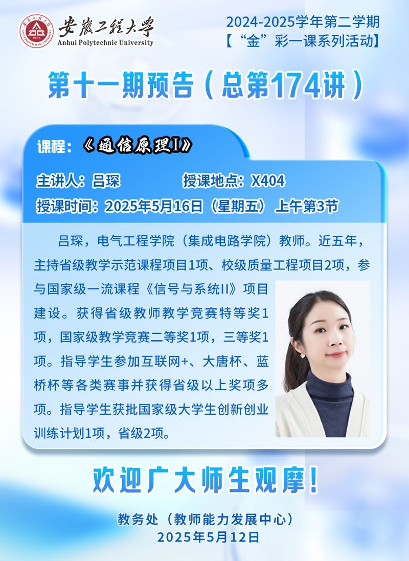 2024-2025学年第二学期【“金”彩一课系列活动】第十一期预告(总第174讲)