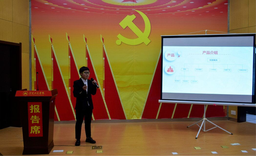 经过初赛的激烈比拼,最终有10支队伍进入决赛。决赛分两个环节,第一环节项目展示,选手通过PPT汇报介绍项目创意、服务范围、市场前景和盈利模式等内容,选手们紧扣主题,内容新颖,向大家展现了优秀的创业实践能力和意识,每个队伍都卯足了劲大展拳脚——花生队的创新花生眼睛、一本正经队的心理咨询APP、开拓者队的一元乐享租赁平台等;第二环节为评委提问,评委们对创业项目的核心竞争力、创新创意点、项目运营可能存在的问题等进行了详细的询问,选手的精彩应答向观众们展现了他们清晰的思路和敏捷的才思,得到了现场评委和观众的一致好评。