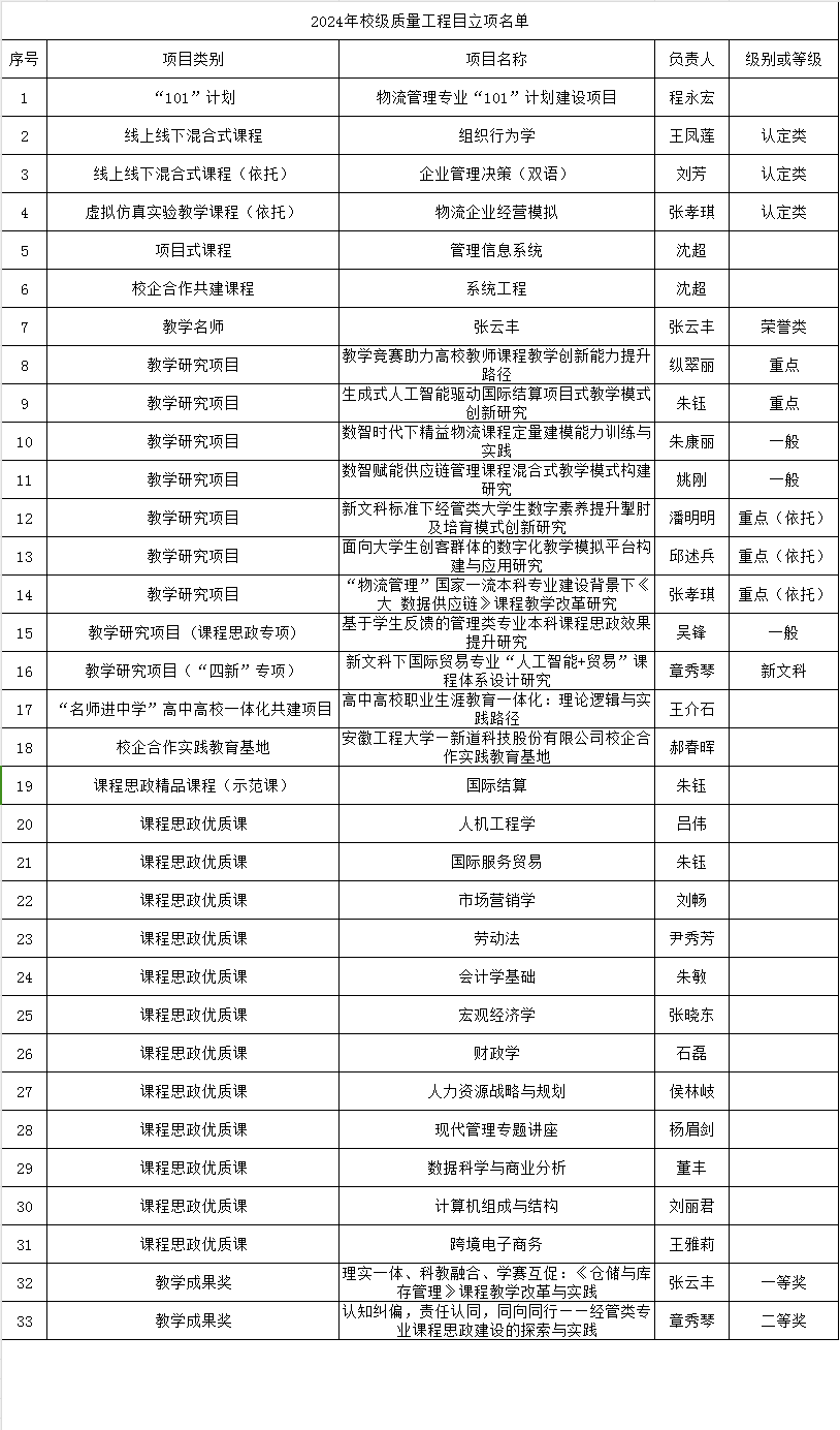 2024年校级质量工程项目