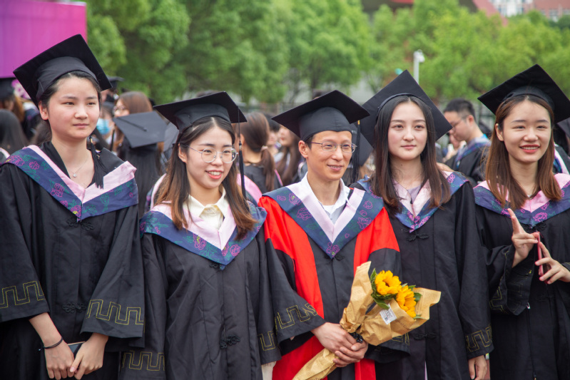典礼上,学院党委书记周毅仁作了题为《与你们的约定》的致辞,哽咽着和大家分享自己见证的18级的四年学习生活中努力进步的点点滴滴,深情寄语全体毕业生“青春心向党,阔步新时代”,秉承“尚德敏学 唯实惟新”的校训和“究理求真 刚毅坚卓”的院训,定能实现“大鹏一日同风起,扶摇直上九万里”的志向,与2022届毕业生立下特别约定,向同学们发出了盛情邀请,常回“家”看看。由张伟、史龙梅、蒋书云、程安琪等四位老师与学生代表共同朗诵的2022届毕业生汪炜桀同学的原创诗歌《相信未来》,讲述了四年的师生情谊,既饱含老师们的深情寄语与殷殷期望,也表达同学们的奋斗决心和人生梦想。张玥老师说,“从教几十年,能清楚记得很多孩子的在校情况,孩子们毕业了在外面好不好,都愿意打电话说一说,这就是身为老师的最大幸福。”史龙梅老师说,“我是一名新教师,从学生到老师的角色转变,我受教于学院老教师手把手的‘传帮带’,同时也时常被学生们感动着,一声‘辛苦了’、一朵鲜花,让我感到很温暖。老师永远祝福你们,你们是最好的未来!”