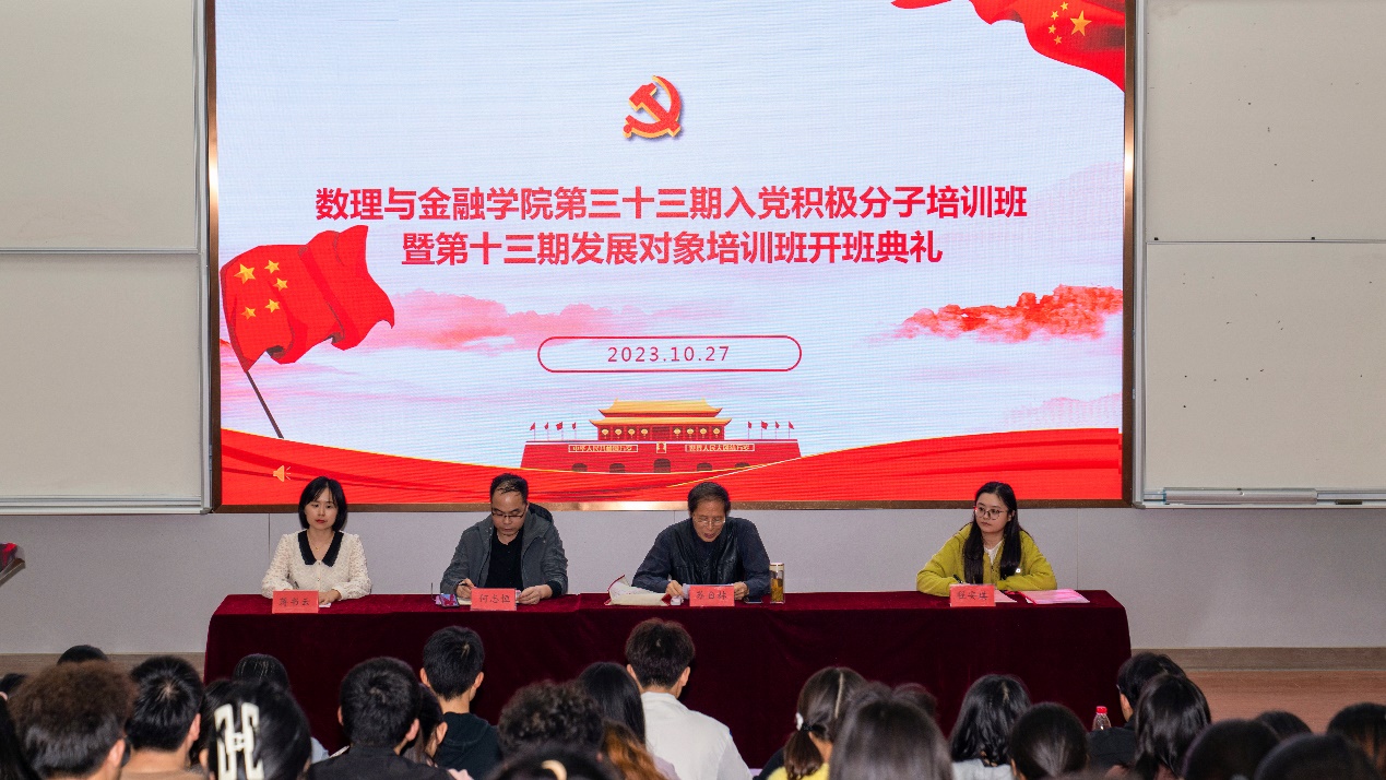 10月27日,数理与金融学院党委第三十三期入党积极分子培训班暨第十三期发展对象培训班开班典礼在2号教学楼报告厅隆重举行。学校党校督导组成员、退休老教师苏自林,学院党委副书记何志恒,培训班班主任程安琪、蒋书云及全体学员参加开班典礼。