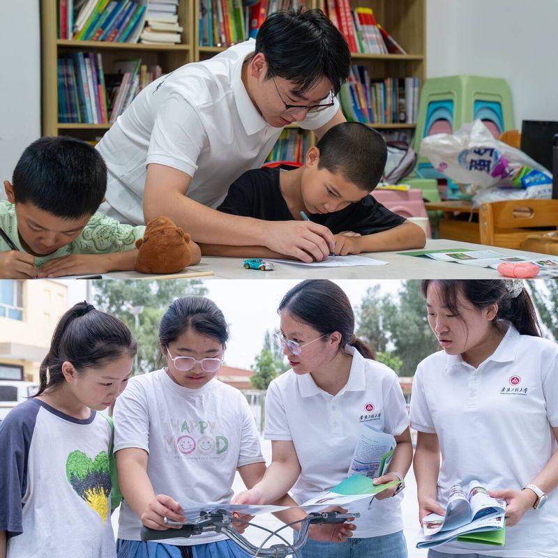 在玉龙社区、昆仑社区,实践团队成员通过绕口令挑战、诗词书写教学等活动,向居民发放宣传手册,宣传推广普通话。二二四团中学一年级学生阿卜杜许库尔“要教爷爷奶奶说普通话”的愿望,成为促进情感交融的生动注脚。孩子们质朴的语言和明亮的眼神,传递出边疆青少年学好国家通用语言文字、融入时代发展、促进各民族交往交流交融的强烈愿望。