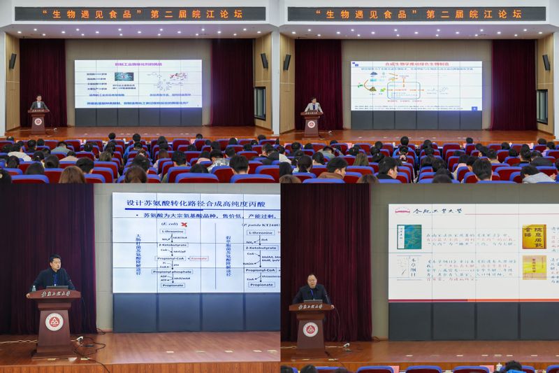 在主题报告环节,华东理工大学教授赵黎明、西北农林科技大学教授刘学波、西北大学教授范代娣、上海海洋大学教授谢晶、上海交通大学特聘教授许平、中国科学院大连化学物理研究所研究员周雍进、清华大学教授戈钧、中国科学院微生物研究所研究员于波、中国科学院天津工业生物技术研究所研究员王钰、合肥工业大学教授吴文达等10位专家各自分享了“生物基材料的合成生物制造”、“膳食营养与脑健康干预研究的理论及实践探索”、“可溶性微针贴片在抗生物膜和伤口修复中的应用” 、“食品冷链发展现状与挑战”、“小分子化合物微生物分解代谢机制和应用”、“天然产物高效生物合成”、“酶-金属复合催化剂构建与应用研究”、“高纯度生物基丙酸的合成生物制造”、“微生物基因编辑育种与食品营养成分合成”、“干腌火腿生物活性肽的保肝机制研究”等学术研究成果。与会专家的学术报告内容丰富,角度多元,涵盖面广,论坛讨论交流氛围热烈。