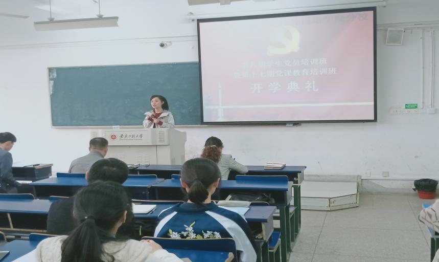 开班典礼在激昂的国歌声中开始。刘云云首先就本次分别面向预备党员和入党积极分子的党课培训班整体情况做了简单介绍。张君宣读了学院党委关于本次党课教育培训班的文件。王钰介绍了本次培训班的班委会组成和学员名单,共有16名预备党员(包括14名学生党员和2名教师党员)和53名学生入党积极分子(本科生51名、研究生2名)参加本次培训。