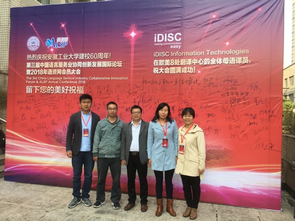 20181017日至18日,第三届中国语言服务业协同创新发展国际论坛在安徽工业大学举办。来自中国译协、各地方译协、全国各地100余所高校、国内外知名语言服务企业等300名专家学者及企业代表参加了论坛。我校外国语学院副院长黄焰结教授携外院翻译团队的张凤梅、王家银、许庆美、苏涛等四位教师参加了本次论坛。