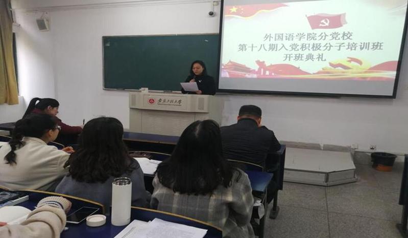 3月13日下午16时,外国语学院分党校第十八期入党积极分子培训在6教108举行开班典礼。院党委书记、分党校校长魏长顺,院党委组织员余本祺,学生第2党支部书记刘云云出席了典礼。典礼由培训班班主任张君主持。