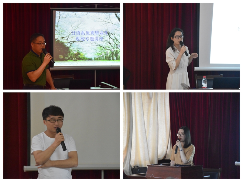 6 月 1 日下午 ,外国语学院在9 教602 举办优秀校友报告会。本次报告会邀请了日语专业首届毕业生中的三位优秀代表:海尔集团合肥海尔洗衣机有限公司海外质量经理李利、中科美菱低温科技股份有限公司品牌总监金丽云和江苏汇鸿国际集团中嘉发展有限公司的张文静,外国语学院党委书记、团委书记、辅导员及日语专业全体学生参加了报告会。