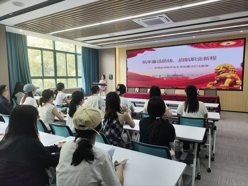 为引导毕业生党员树立廉洁从业意识,筑牢思想防线,扣紧职业生涯“第一粒扣子”。6月6日下午,外国语学院组织开展了“筑牢廉洁防线,启航职业新程”廉洁纪法教育主题党课,学院党委副书记、纪委书记李校林为即将步入职场的毕业生党员们送上了一份特殊的“毕业礼”。