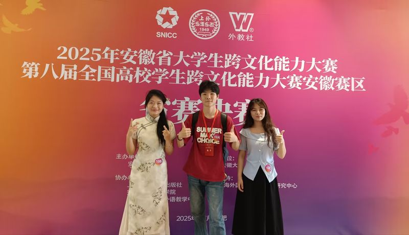 近日,2025年安徽省大学生跨文化能力大赛获奖名单出炉,我校学子在团体赛和个人赛中均表现出色,荣获了团体赛二等奖2项,个人赛二等奖1项的好成绩。我校获得大赛优秀组织奖,相应指导老师获优秀指导教师奖。