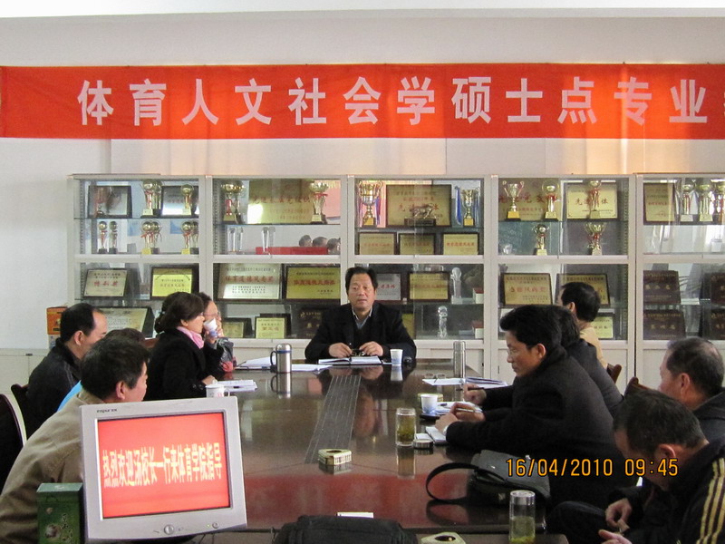 416上午体育教学部举行中心组学习会议。在宣传部部长苏国红、保卫处副处长邬海量的陪同下,副院长汤斌莅临指导。