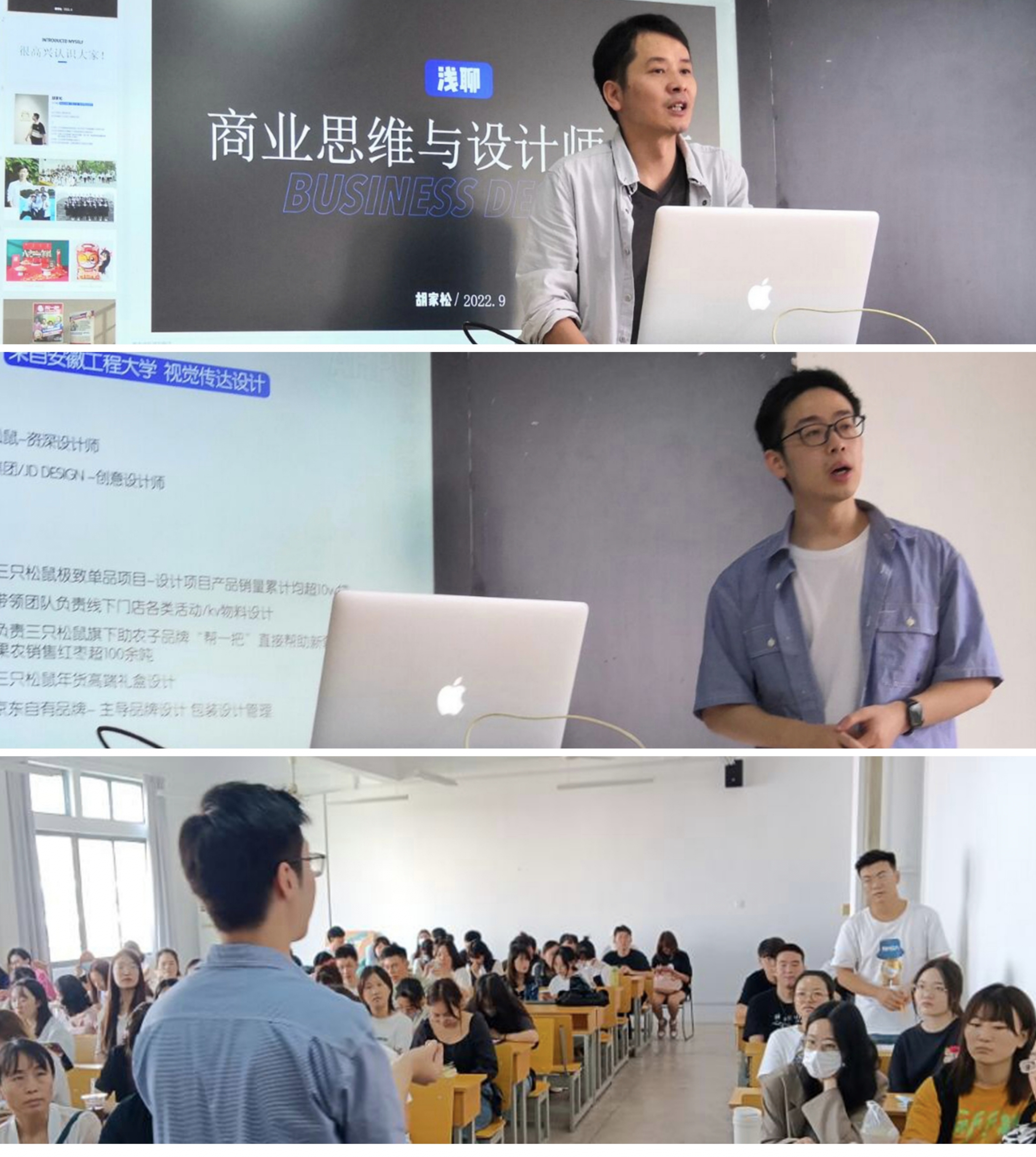 胡家松在此次讲座中,为同学们分享了自己多年的设计实践案例,并通过讲述创意思维与商业思维的差异,引导同学们更好地去理解设计师在市场运作中的价值。从为三只松鼠设计八方年礼高端礼盒、“帮一把”公益扶贫包装设计、三只松鼠六一趣拼零食盒、“印象云南”咖啡包装、雨润玉米热狗肠设计推广,到负责京东亿级自有品牌——惠寻包装体系搭建与管理等。设计师一线的设计实践经验,既开阔了同学们的设计视野,也加深了同学们对商业与设计关系的理解。