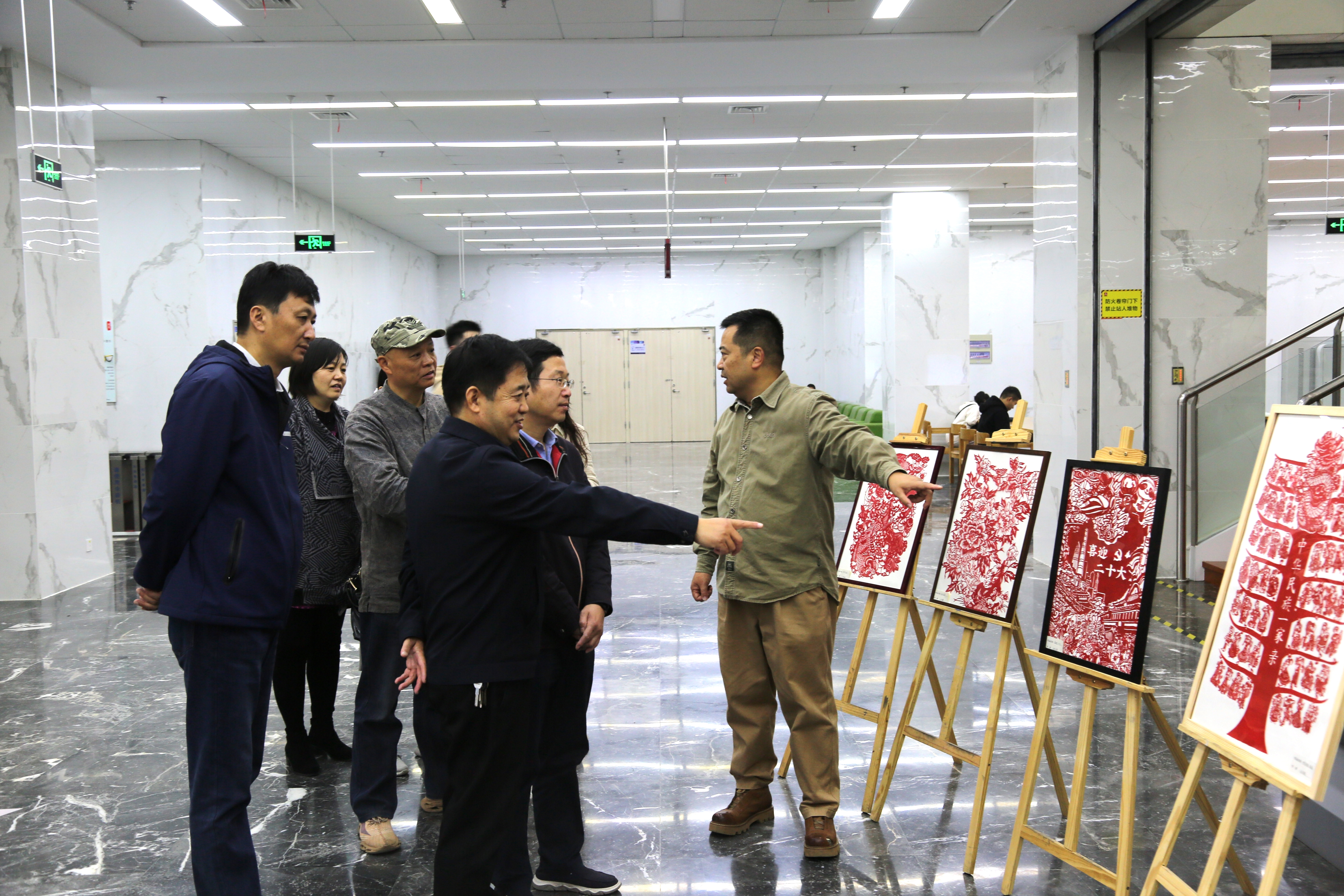 “听说那边有漆艺和剪纸作品,可精美了。走,我们快去瞧瞧寻声而去,是在学校图书综合楼一楼大厅举办的“妙剪生花漆韵传承专业作品展。
