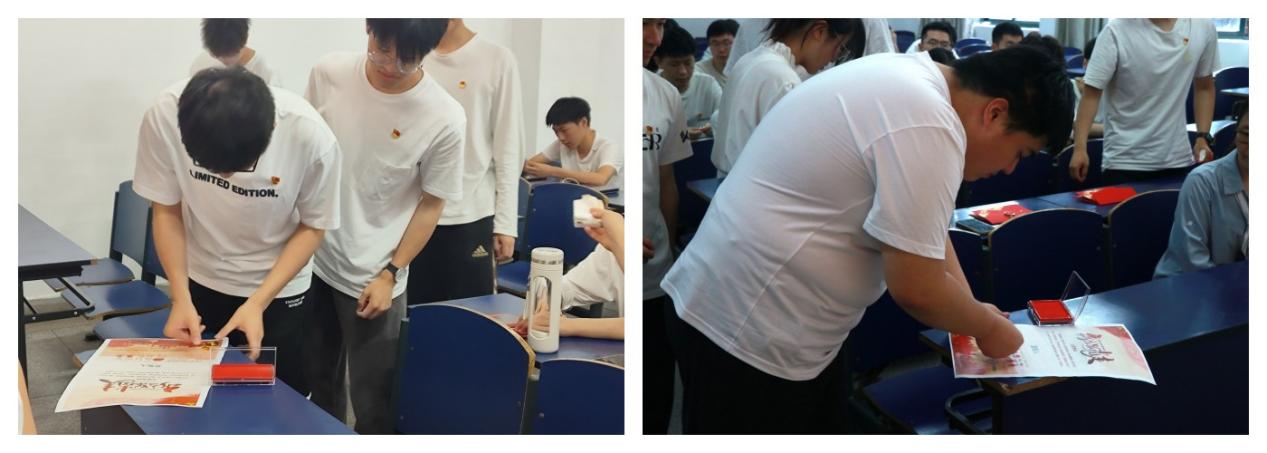 为把“政治生日”的外在仪式转化为党员党性意识的自觉提升,活动特地设计了按手印环节,支部全体党员逐一在政治生日卡上庄重地按下自己的手印,在入党誓词旁留下鲜红印记,时刻提醒自己履行政治承诺,做表率、当先锋,努力成为中国特色社会主义建设事业的接班人。