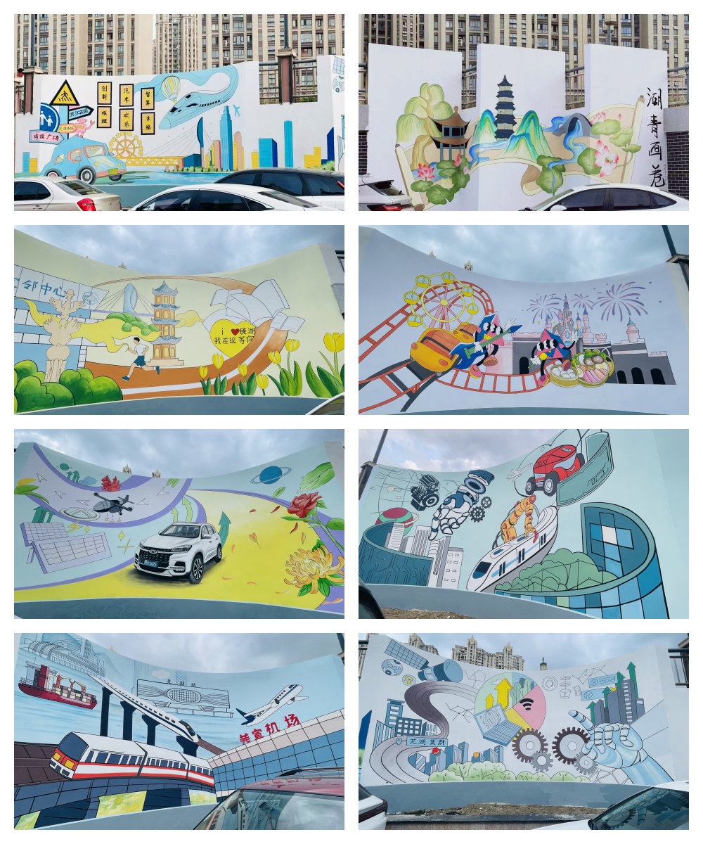 前期接到镜湖区农业农村水务局“欢乐芜湖,欢乐镜湖”主题墙绘设计委托项目后,设计学院“设计家”师生团队以“艺术赋能城市更新”为核心理念,打造“湖山画卷”“城市记忆”“城市建设”“城市文字名片”四组主题墙绘,将自然、历史与未来融为一体,形成一条可阅读、可体验的城市文化长廊。项目负责人叶宣表示:“我们希望让防洪墙从‘功能屏障’转变为‘文化窗口’,激发市民对城市的认同感。”